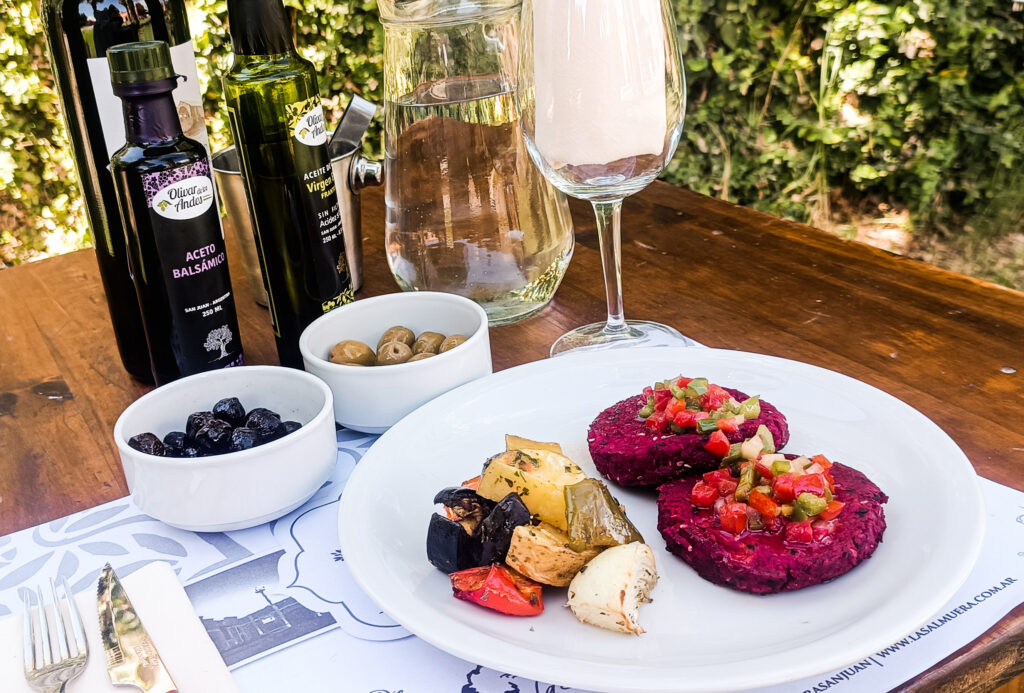 con aceite de oliva Olivar de los Andes. Luego colocar la salsa criolla con rúcula por encima de los